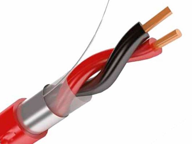 КСРЭВнг(А)-FRLS 1х2х0,97 огнестойкий экранированный кабель для пожарной сигнализации с 2 медными жилами диаметром 0,97 миллиметров и площадью сечения 0,75 миллиметров квадратных, в изоляции из керамизирующейся кремнийорганической резины, с экраном из ламинированной фольги и оболочкой их негорючего поливинилхлоридного пластиката с низким выделением дыма.