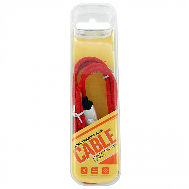 Кабель micro USB Футбол в матерчатой обмотке в пластиковом боксе, красный